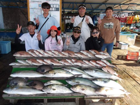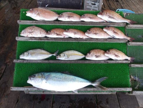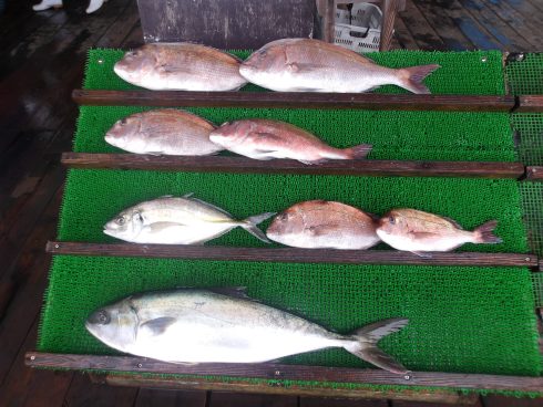 - ヒラマサ(1尾)シマアジ(1尾)タイ(6尾)