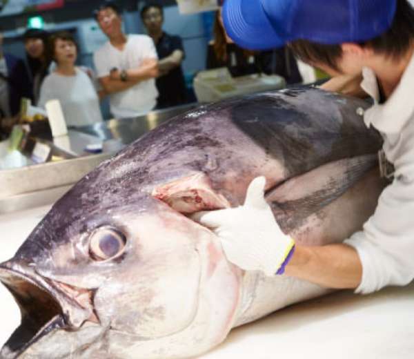 南紀勝浦港などから直送された、一度も凍らせていない生のマグロの解体切り売り販売を行っております。