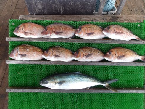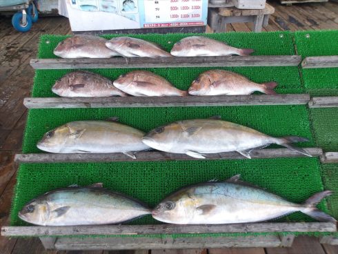 - ヒラマサ(1尾)シマアジ(1尾)タイ(5尾)