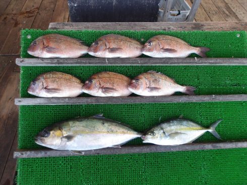 - カンパチ(1尾)シマアジ(1尾)タイ(6尾)