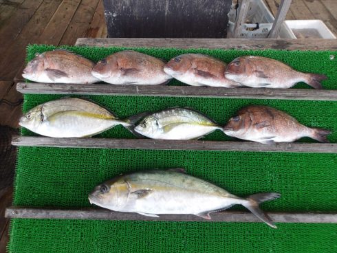 - カンパチ(1尾)シマアジ(1尾)タイ(4尾)
