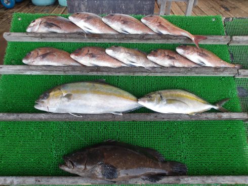 - カンパチ(1尾)シマアジ(1尾)タイ(4尾)