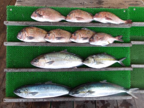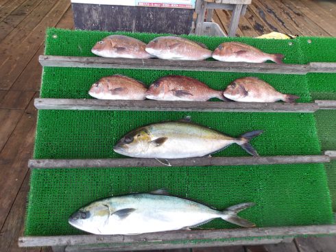 - ヒラマサ(1尾)シマアジ(1尾)タイ(6尾)