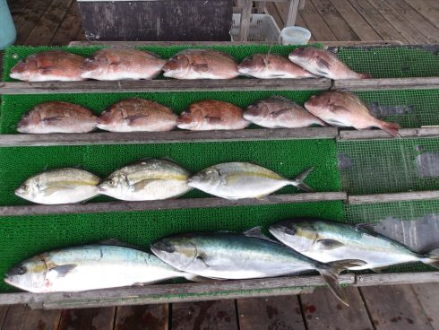 - ヒラマサ(2尾)カンパチ(1尾)シマアジ(4尾)タイ(9尾)