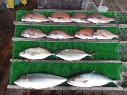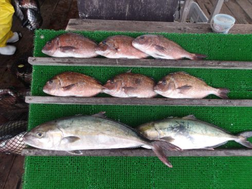 - カンパチ(1尾)タイ(4尾)シマアジ(1尾)