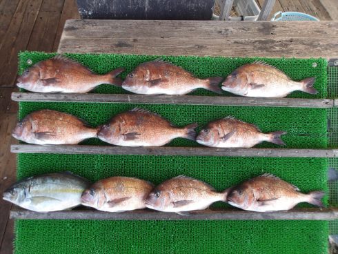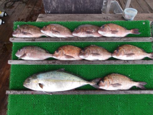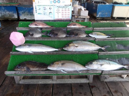 - カンパチ(2尾)シマアジ(1尾)タイ(6尾)イシガキ(1尾)