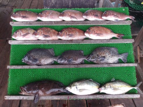 - ヒラマサ(1尾)タイ(11尾)イシガキ(1尾)