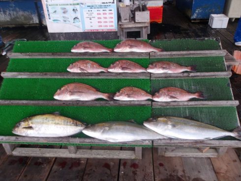 - カンパチ(1尾)シマアジ(2尾)タイ(10尾)
