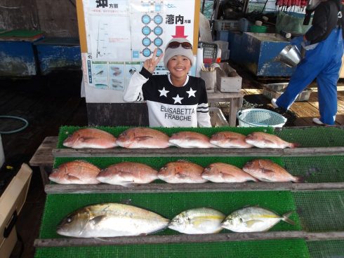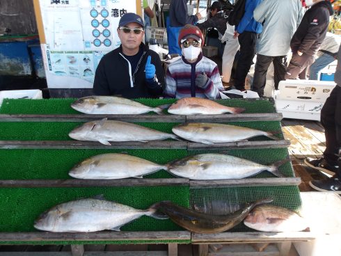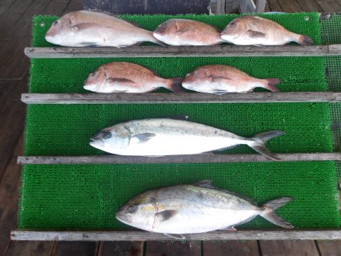 - カンパチ(2尾)シマアジ(3尾)タイ(1尾)