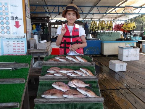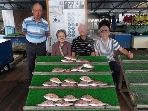 - カンパチ(1尾)シマアジ(1尾)タイ(14尾)