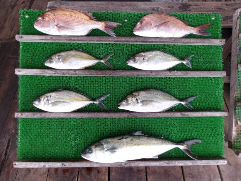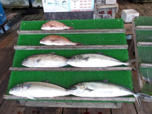 - ヒラマサ(1尾)シマアジ(4尾)タイ(2尾)