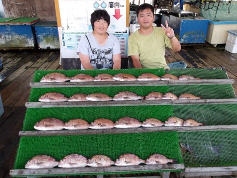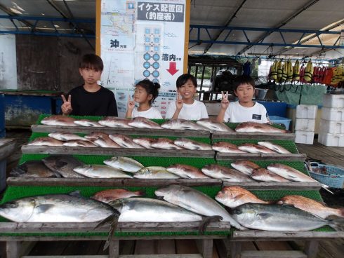 - ヒラマサ(3尾)・カンパチ(1尾)・シマアジ(3尾)・タイ(26尾)・イシガキ(1尾)
