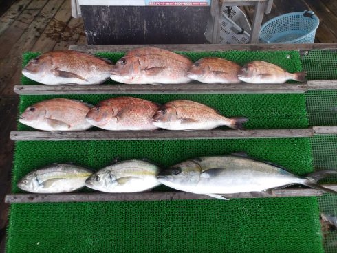 - カンパチ(1尾)・シマアジ(1尾)・タイ(4尾)