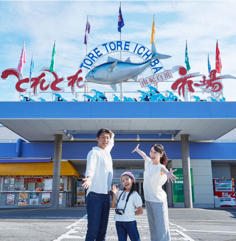 日本全国の新鮮なお魚をその場で食べたり、和歌山のお土産をショッピングしたり、