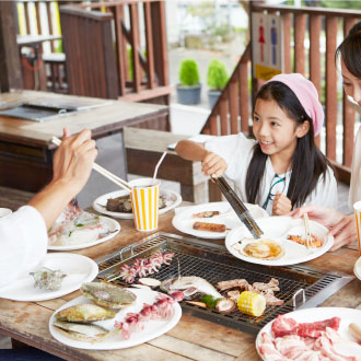 気持ちのいいバーベキューが楽しめます。 - BBQコーナーへ